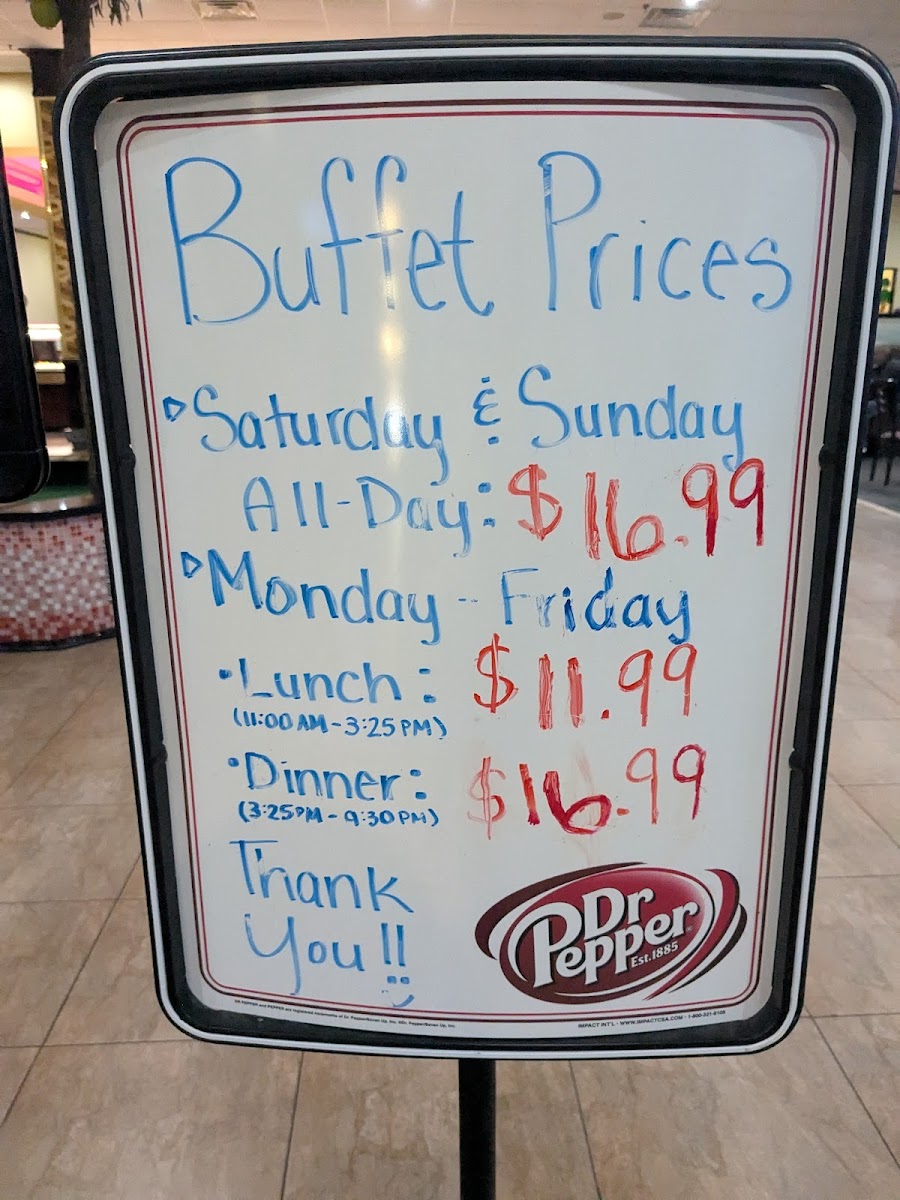 Guests typically use the menu for casual dining experiences, either selecting from the buffet or ordering from the hibachi grill and sushi bar. The variety of offerings accommodates both individual diners and larger groups.